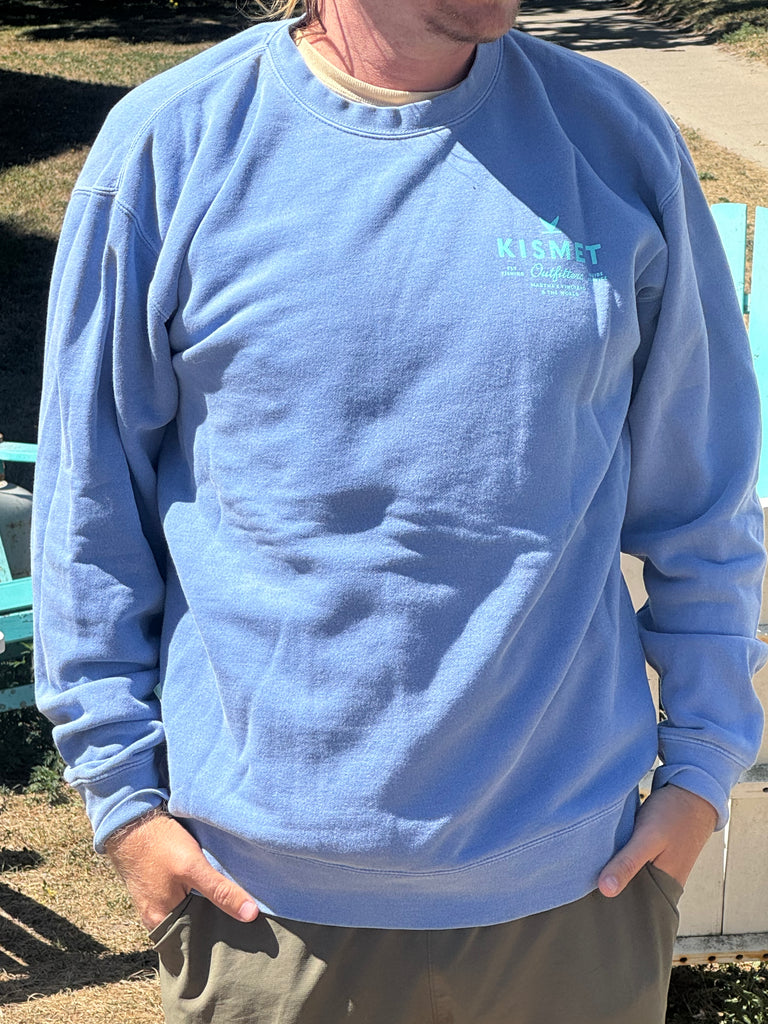 Rep your favorite fly shop, Kismet Outfitters, in this cozy blue sweatshirt featuring custom striper and crab design! Regular unisex fit.