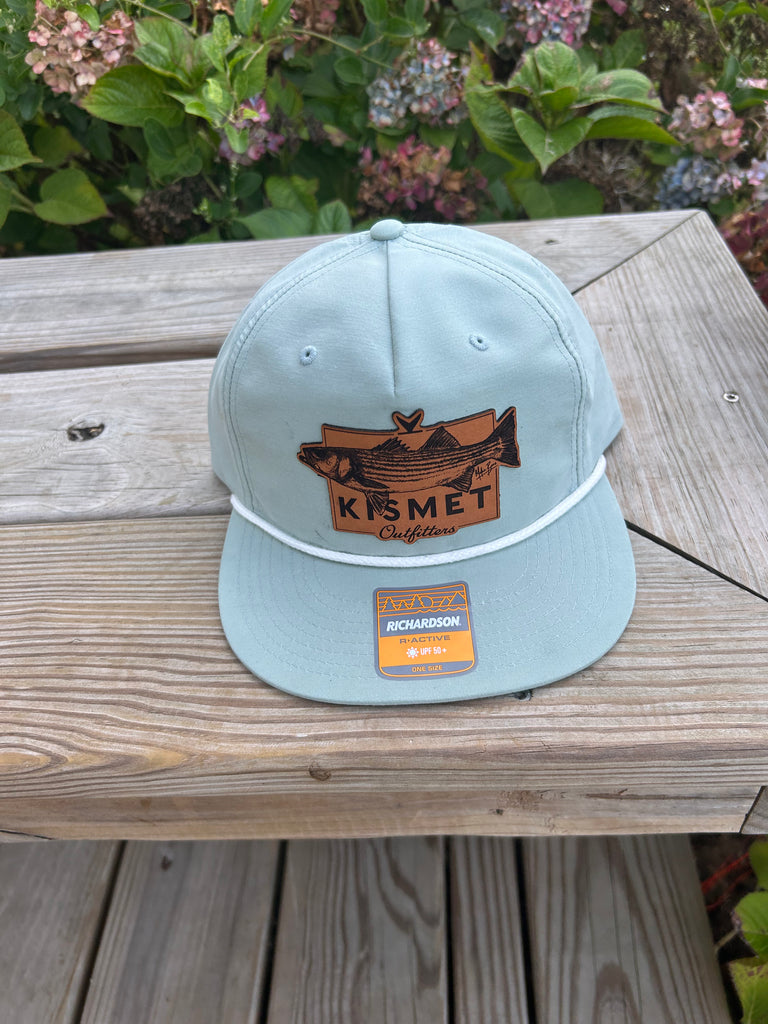 This hat is quick drying and is constructed of sun protecting fabric. Handmade leather patch by an artist in South Carolina.