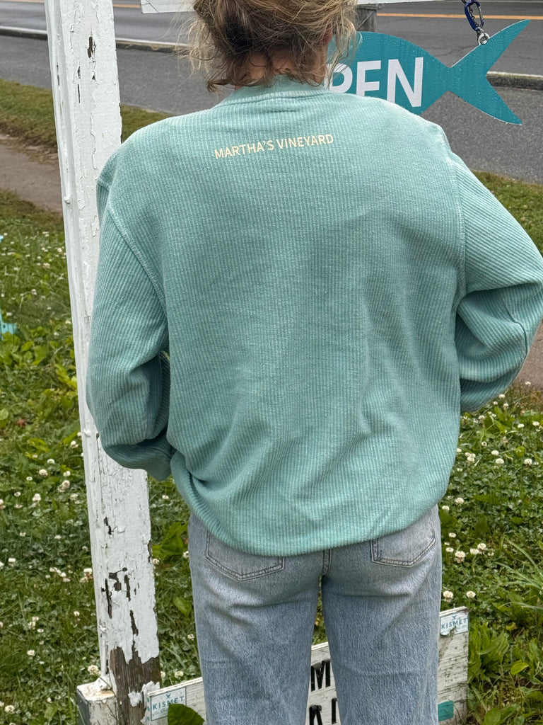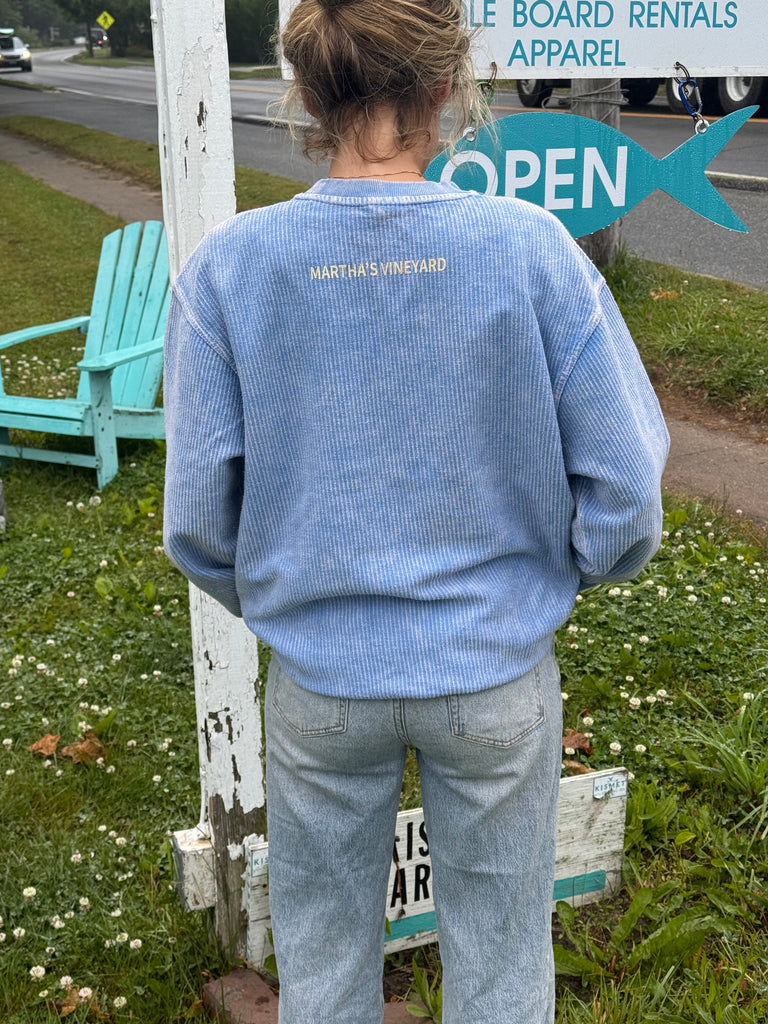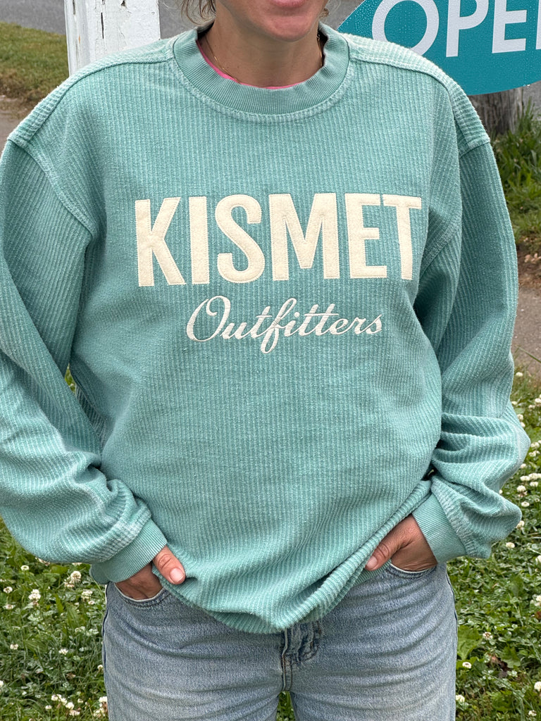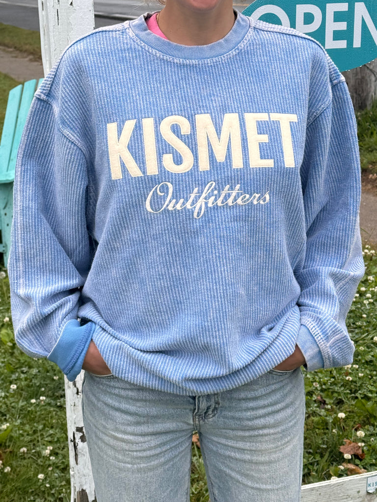 Soft and cozy Kismet branded crewneck. Wears like your old favorite and the perfect weight for cool breezy summer nights in Edgartown.
